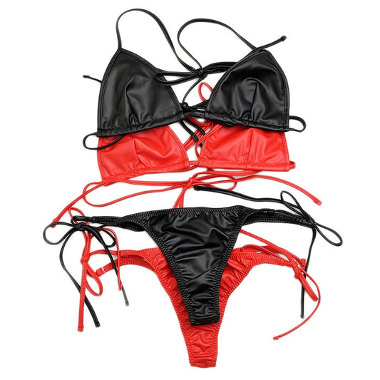 ブラジャー ショーツ セット Tバック ひもパン タンガ セクシー フェイクレザー ラポーム チェリーラブ LS091