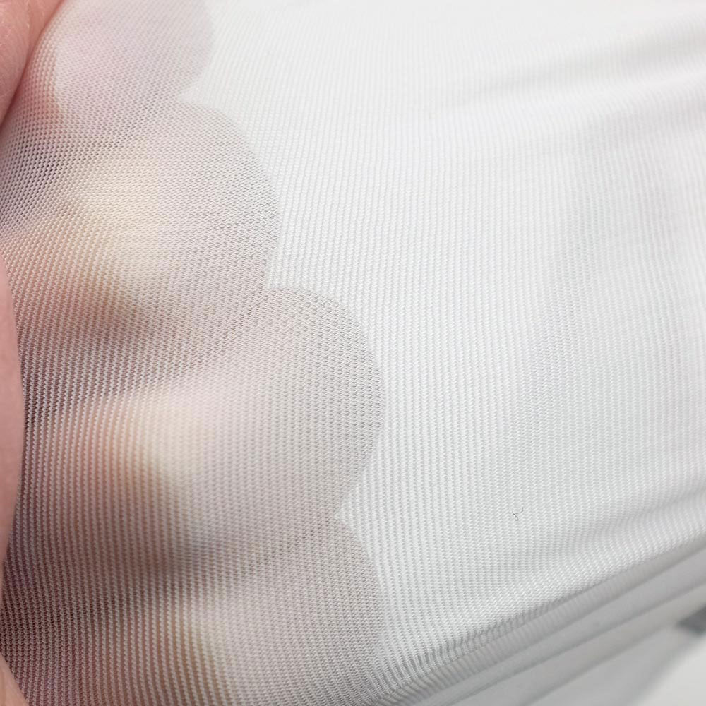 生地はクリア感のあるツルツルな肌触りで伸縮性良い極薄2wayストレッチ素材。