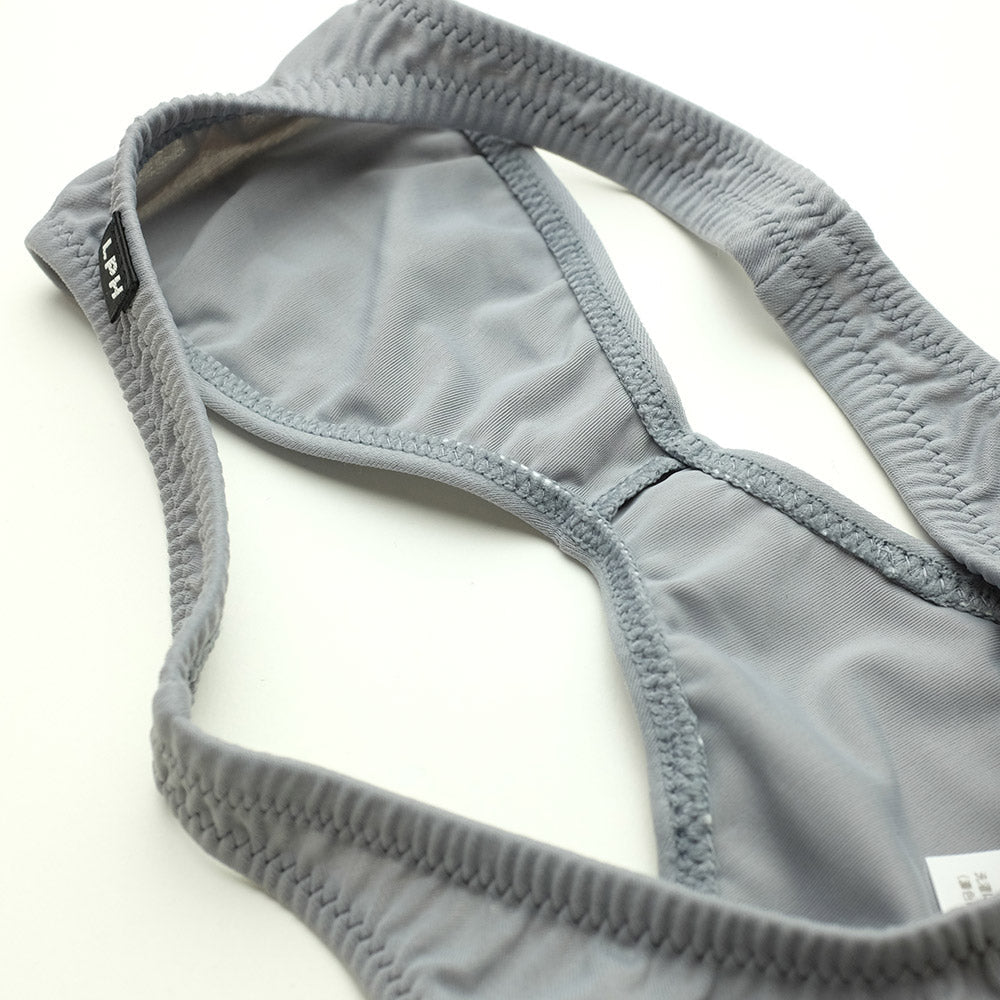 フロントをシャープにデザインしたスタイリッシュなハーフバックメンズビキニ。