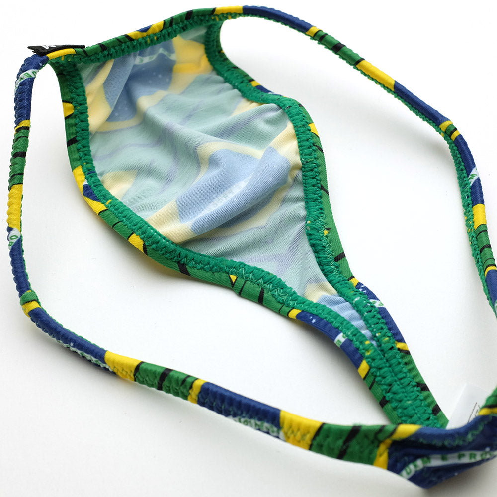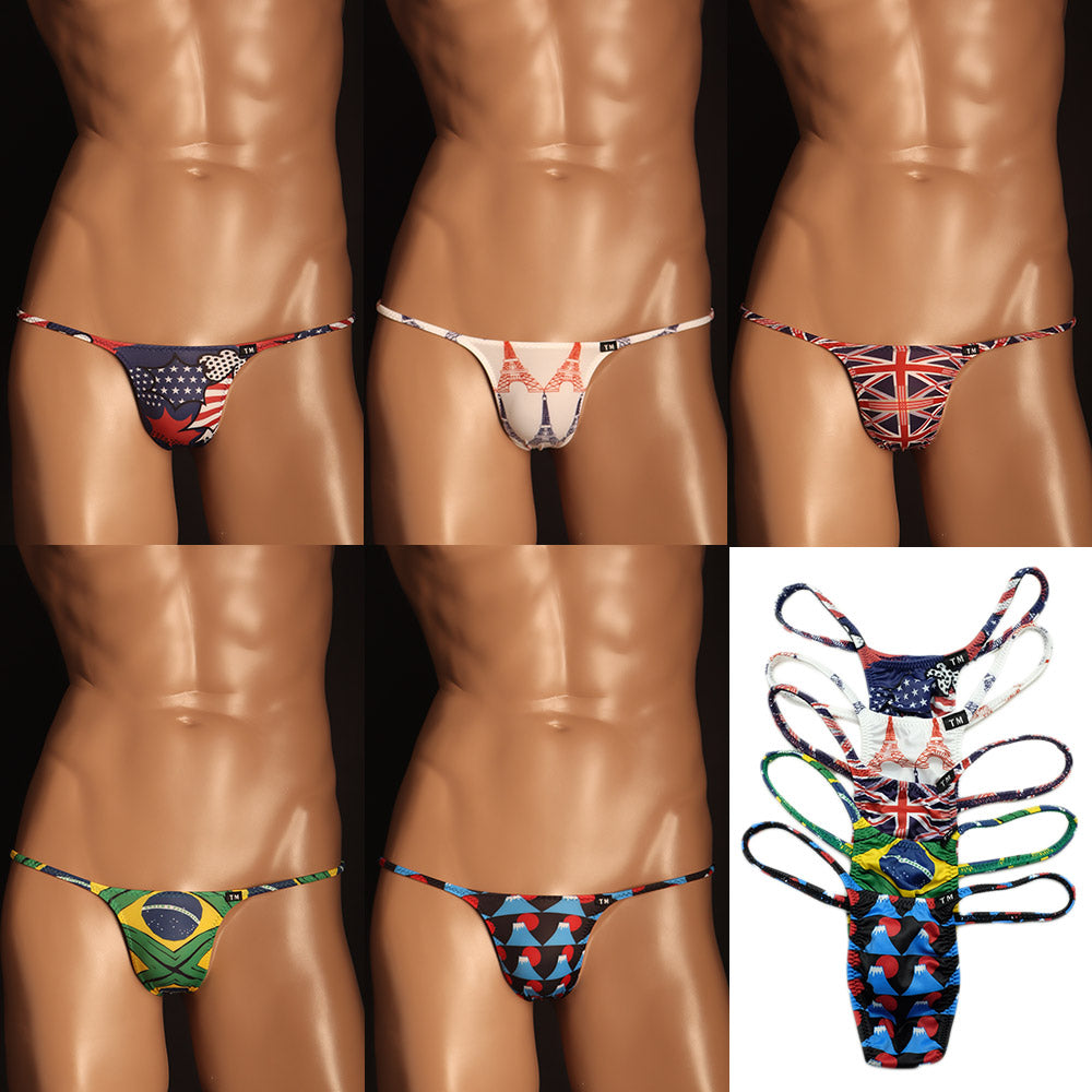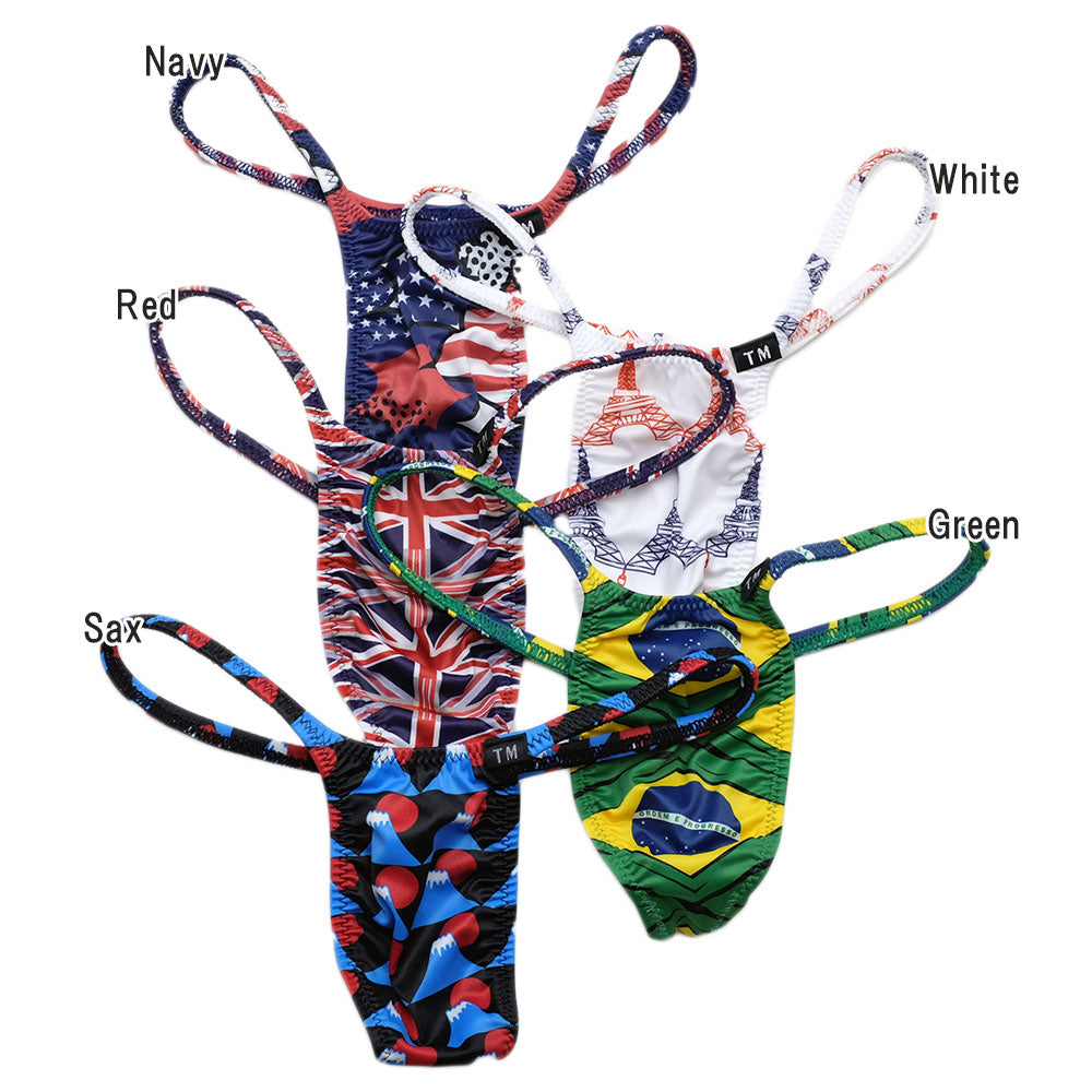 いろいろな国をイメージしたナショナルフラッグプリントのメンズTバックビキニ。